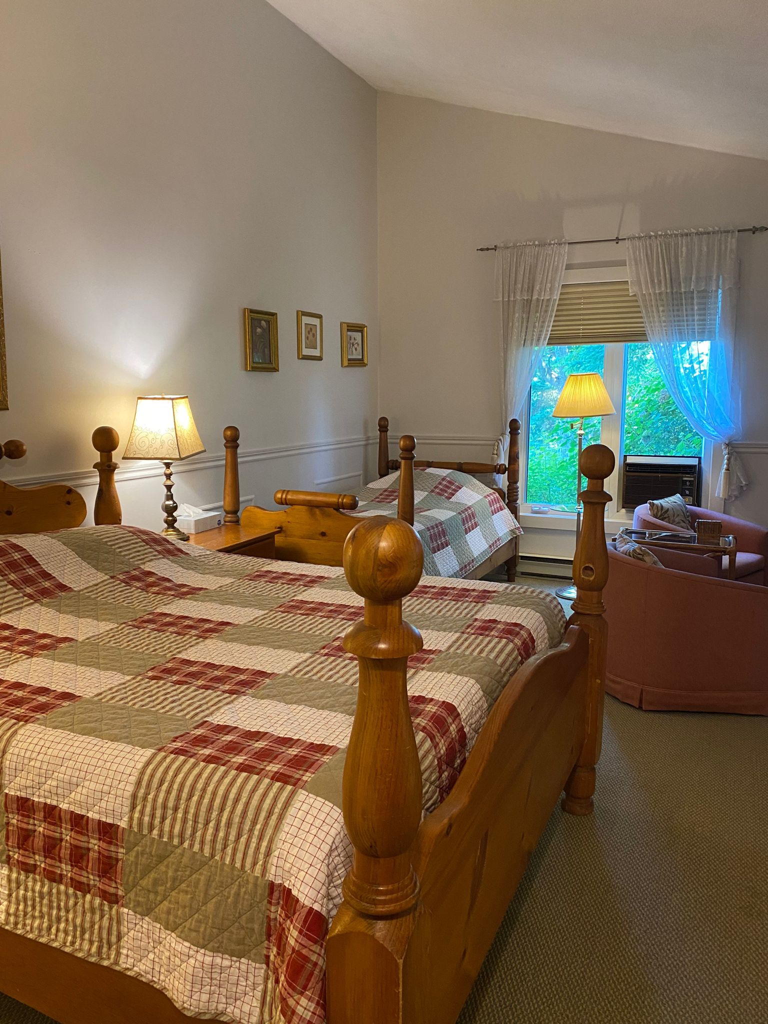 All studios have a wood burning fireplace, seating area in front of the fireplace and TV, and private bathroom. Mennonite Pine Cannonball beds have Queen Tempur-Pedic sleep systems. Studio 1-3 have both Queen & Twin beds handy for when traveling with friends.